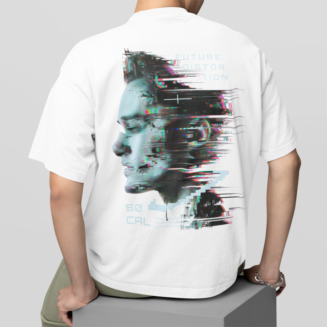 FUTURISTIC MALE White – Round Neck T-shirt